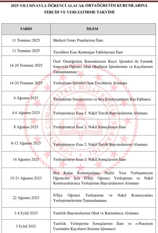 2025-LGS Tercih Sürecine İlişkin Takvim.